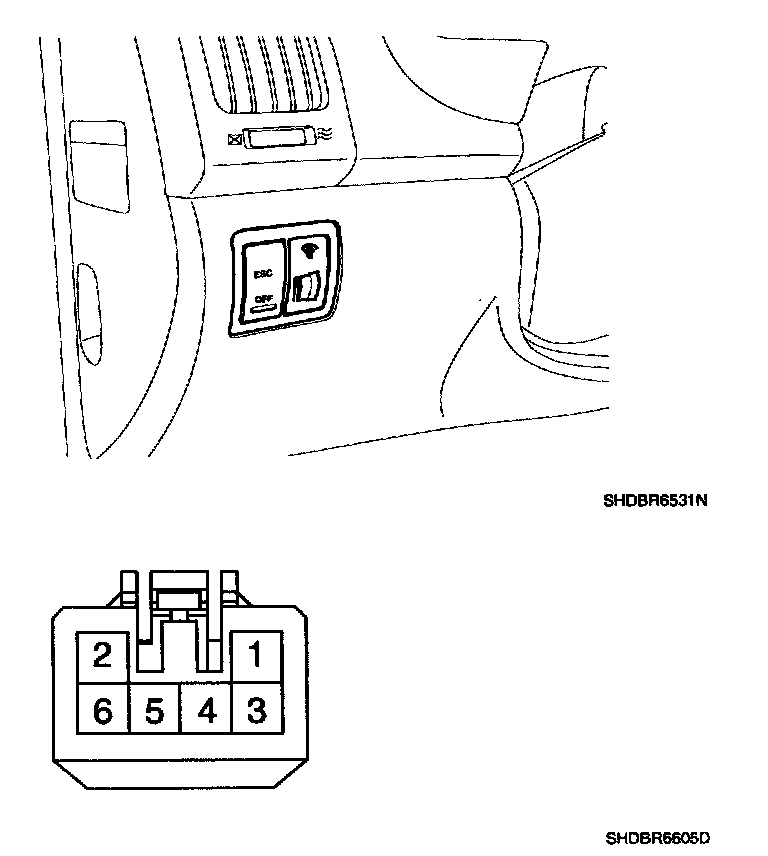 1. Remove the ESC OFF switch from the switch panel on the crash pad of the driver's side.