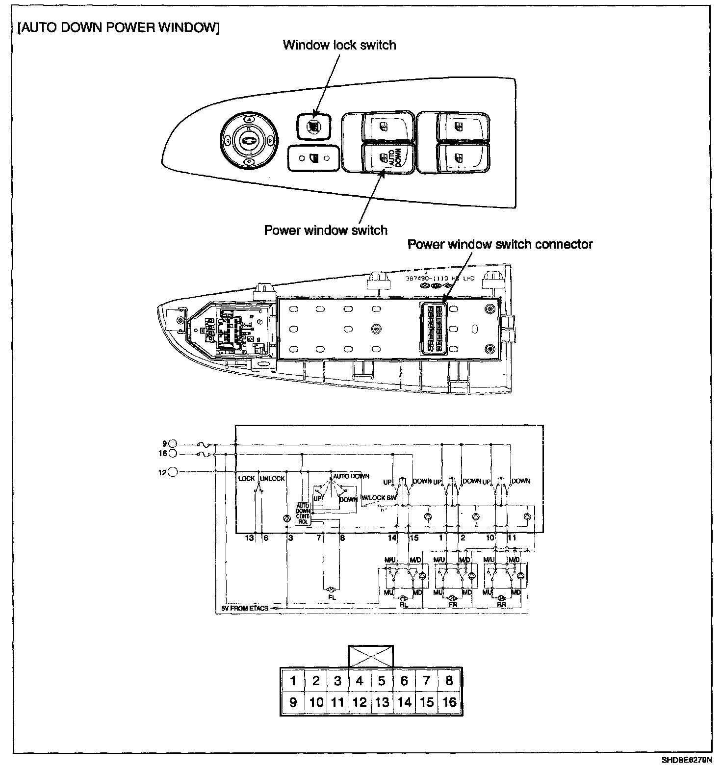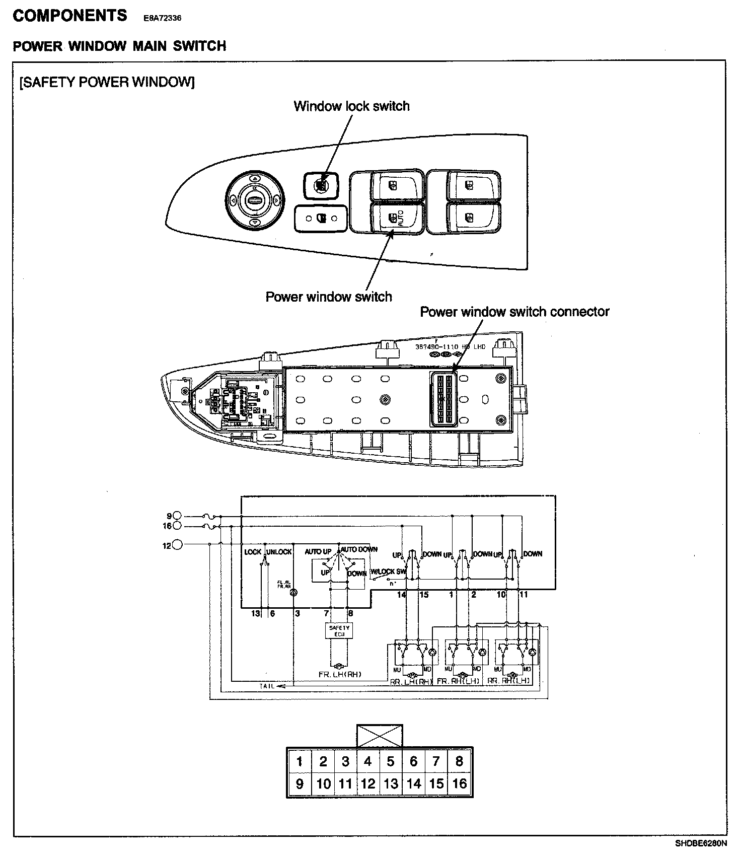Power Window Main Switch - Components: