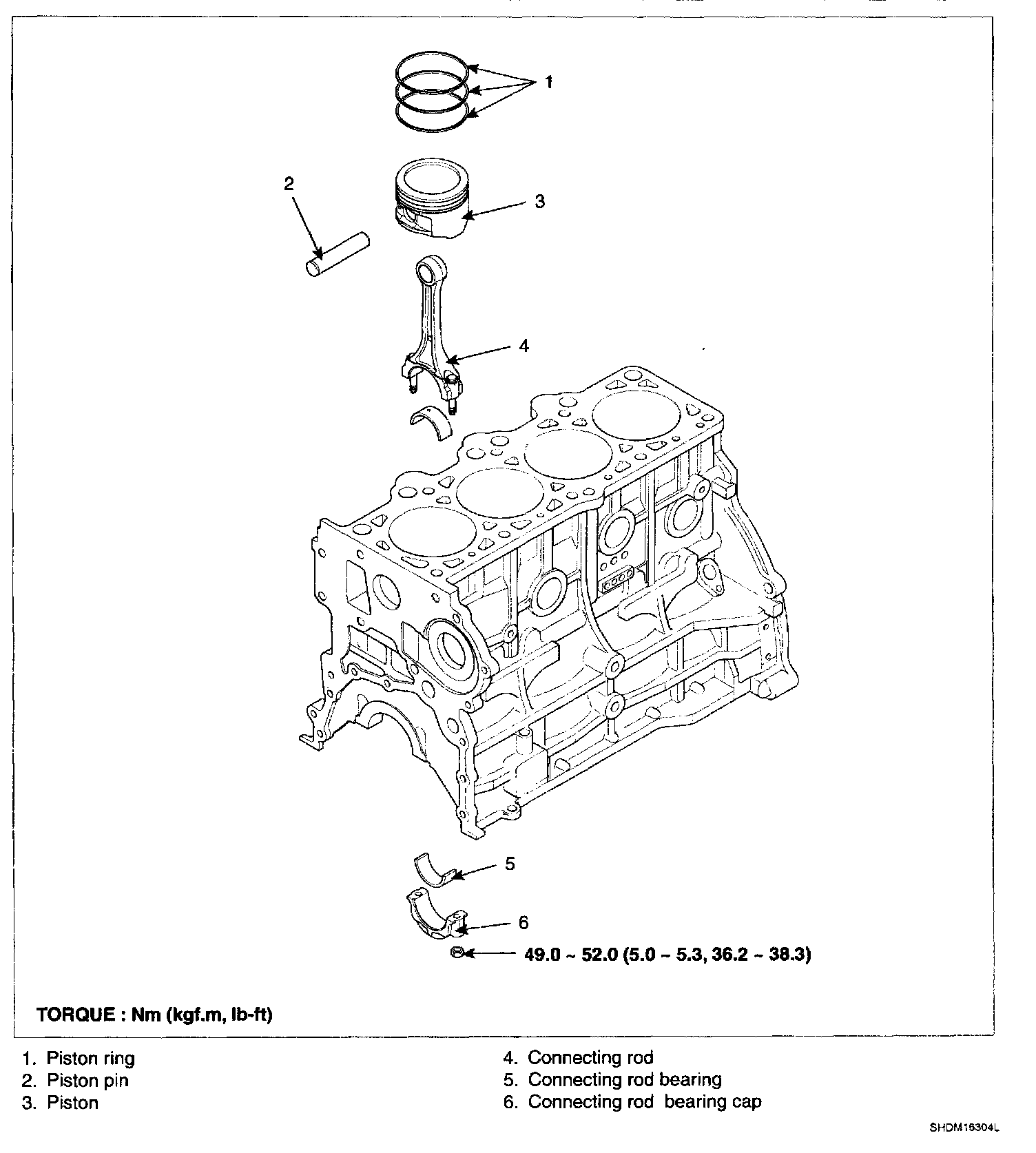 2) Push the piston, connecting rod assembly and upper bearing through the top of the cylinder block.