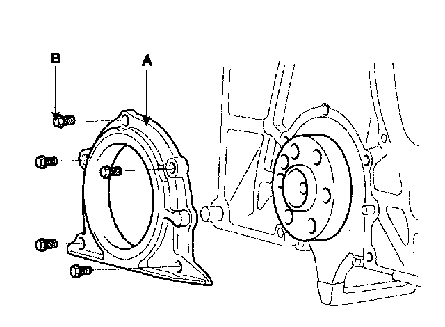 Remove the 5 bolts (B) and rear oil seal case (A).