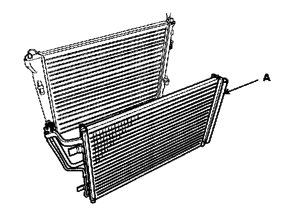 4. Remove the condenser (A) by lifting it up. Be careful not to damage the radiator and condenser fins when removing the condenser.