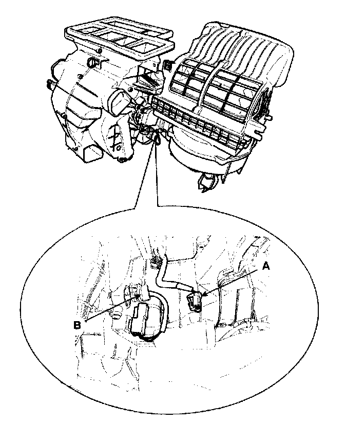 2. Remove the evaporator temperature sensor (B), by pulling it after rotating 90° in a counter clock wise direction.