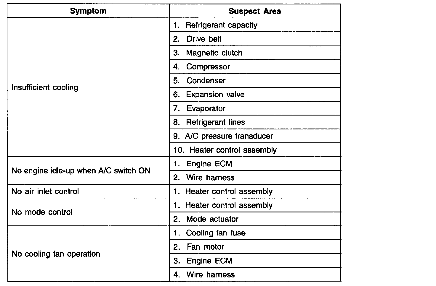 TROUBLESHOOTINGPROBLEM SYMPTOMS TABLE
