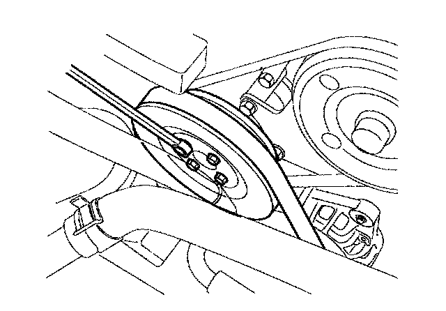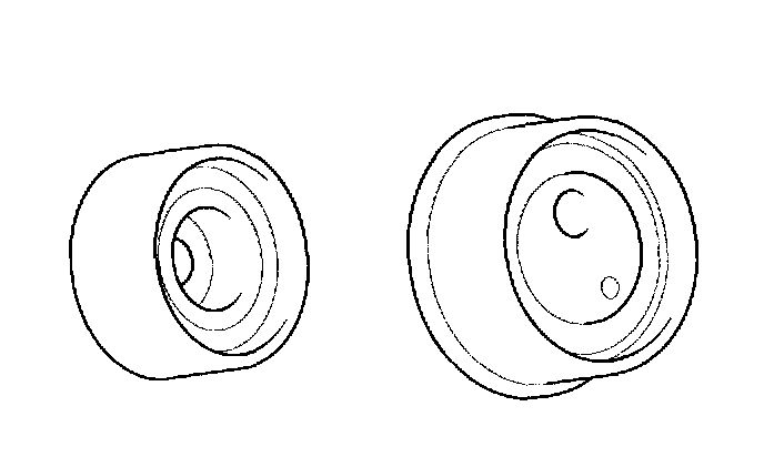 2. Inspect the tensioner pulley and the idler pulley for easy and smooth rotation and check for play or noise. Replace as necessary.