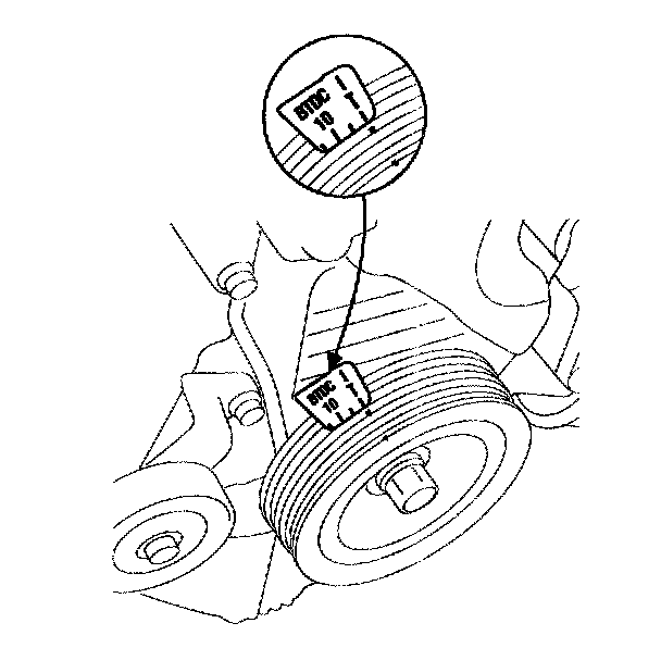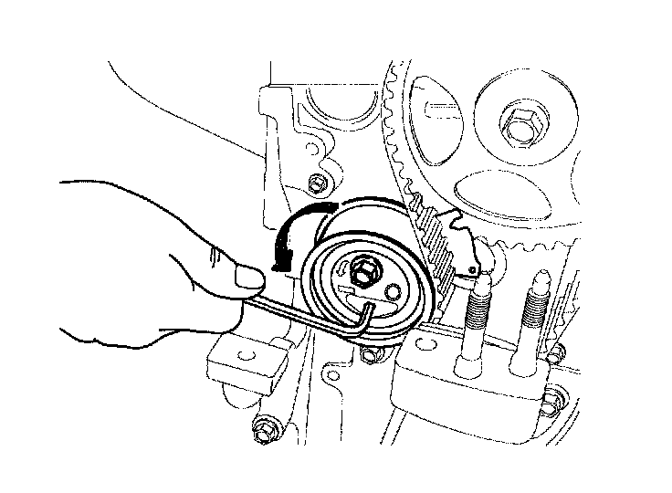 NOTE: If the timing belt is reused, make an arrow indicating the turning direction to make sure that the belt is reinstalled in the same direction as before.