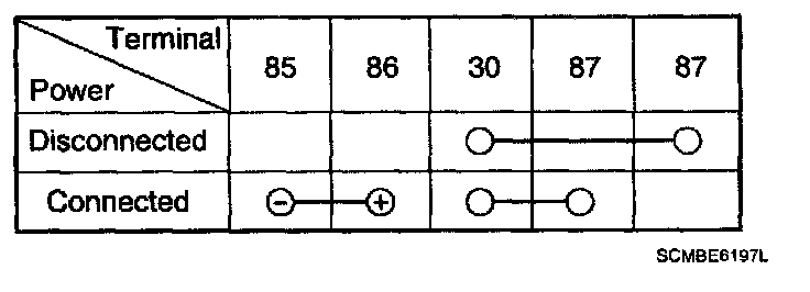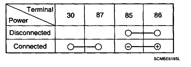 2. There should be no continuity between the No.30 and No.87 terminals when power is disconnected.