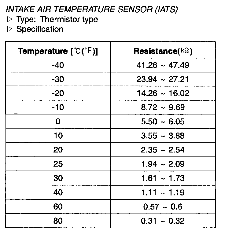 Intake Air Temperature Sensor(IATS) - Specification: