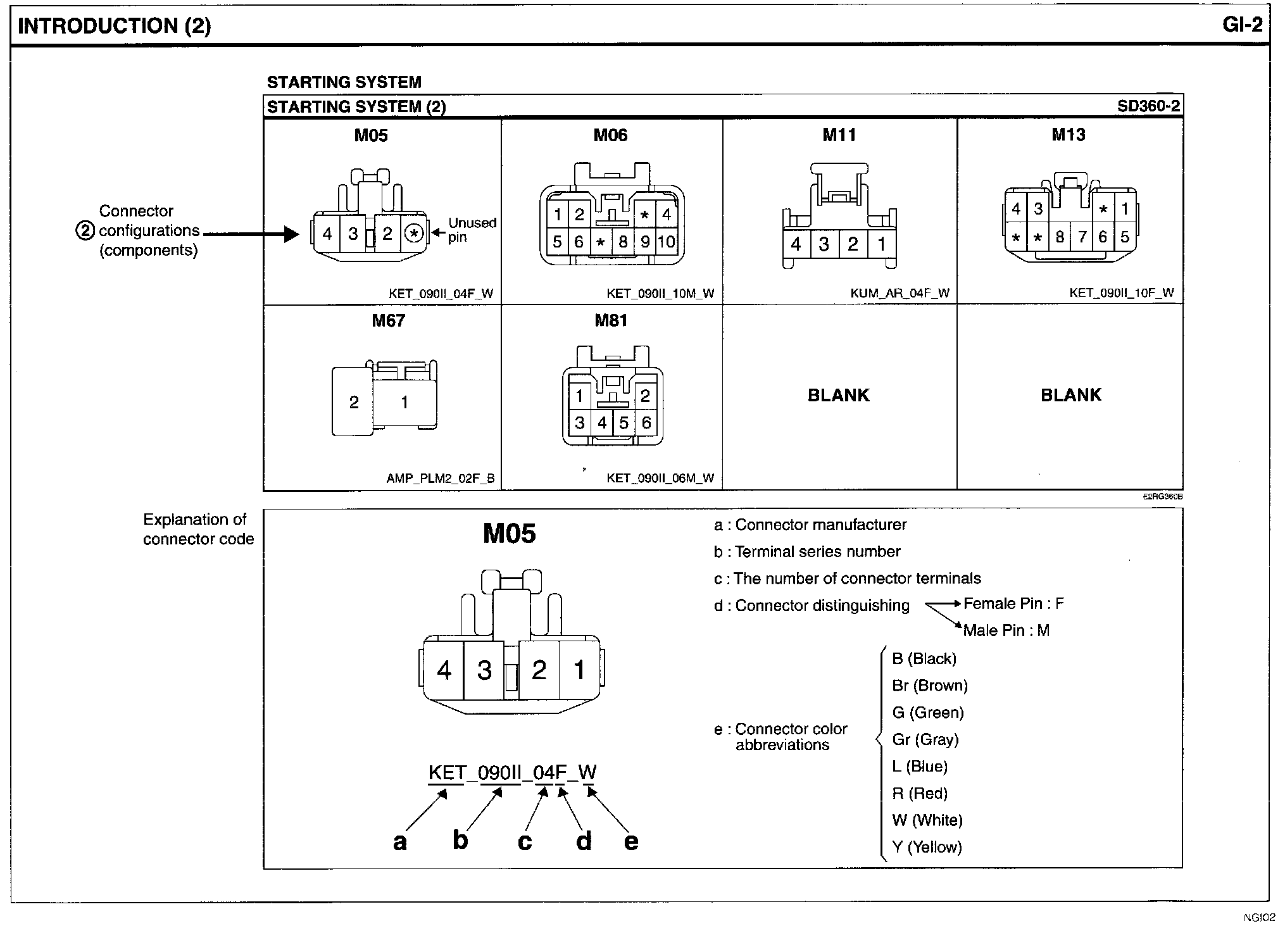 - It shows the front of the connector on the harness side when not to the harness connector. The terminal number on each connector can be obtained by following the pattern used in 05 connector view and numbering order. Unused terminals are marked with an asterisk (*).