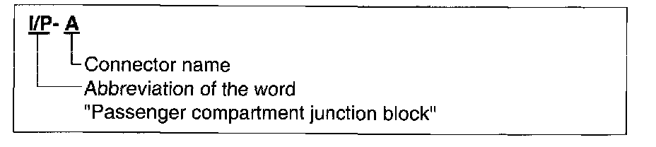 A junction block identification symbol consists of a wiring harness location classification symbol corresponding to a wiring harness location and number corresponding to the connector in the junction block.
