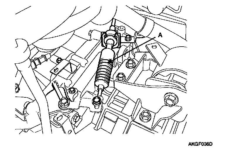4. Install the control cable (A) to the manual control lever.