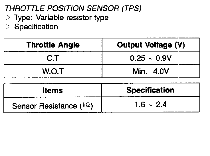 Throttle Position Sensor (TPS) - Specification: