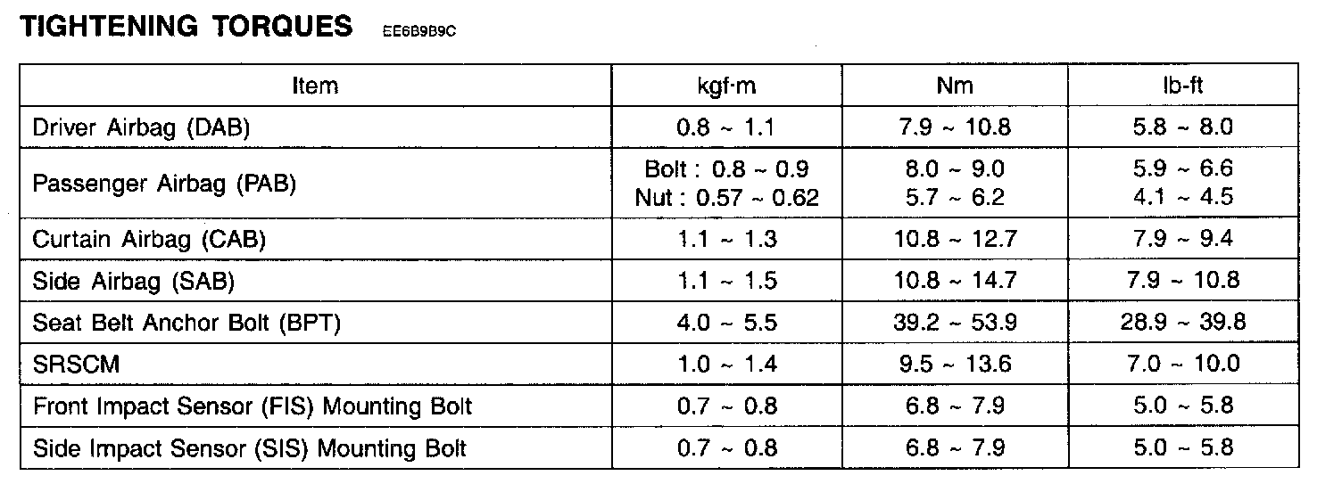 Tightening Torques: