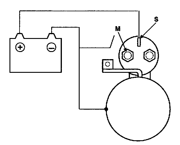 2. Connect a 12 V battery between the S-terminal and the M-terminal.