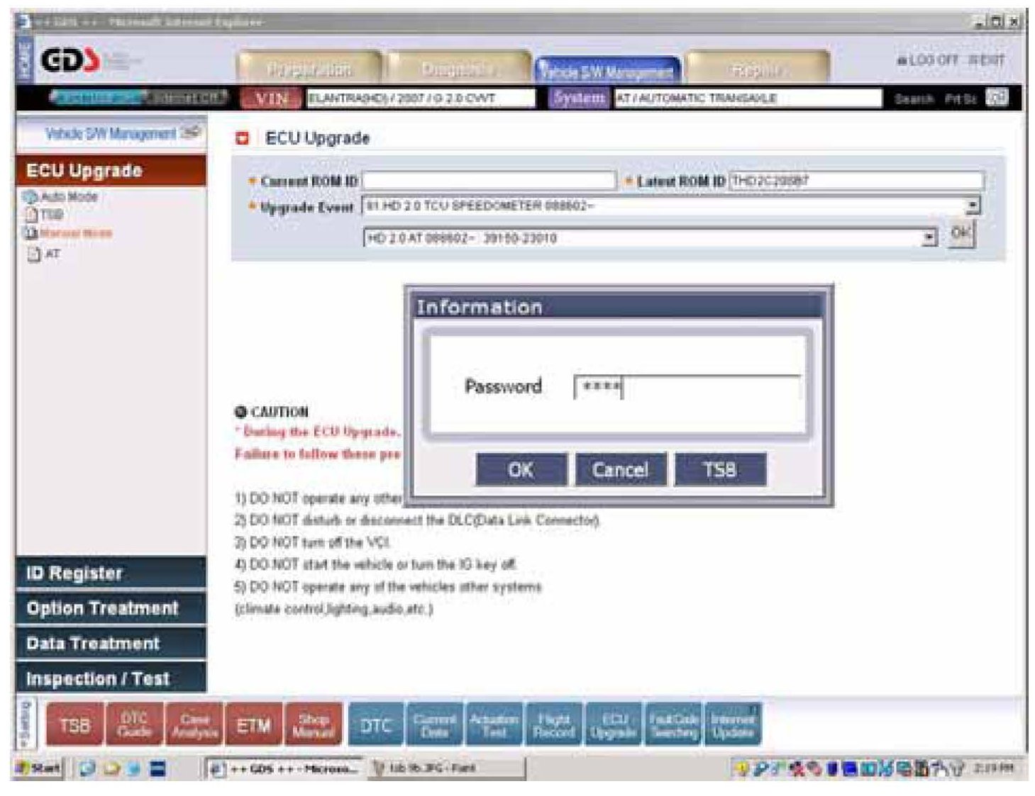 4. Next enter the appropriate password from the table above and select OK in the ECU Upgrade screen.