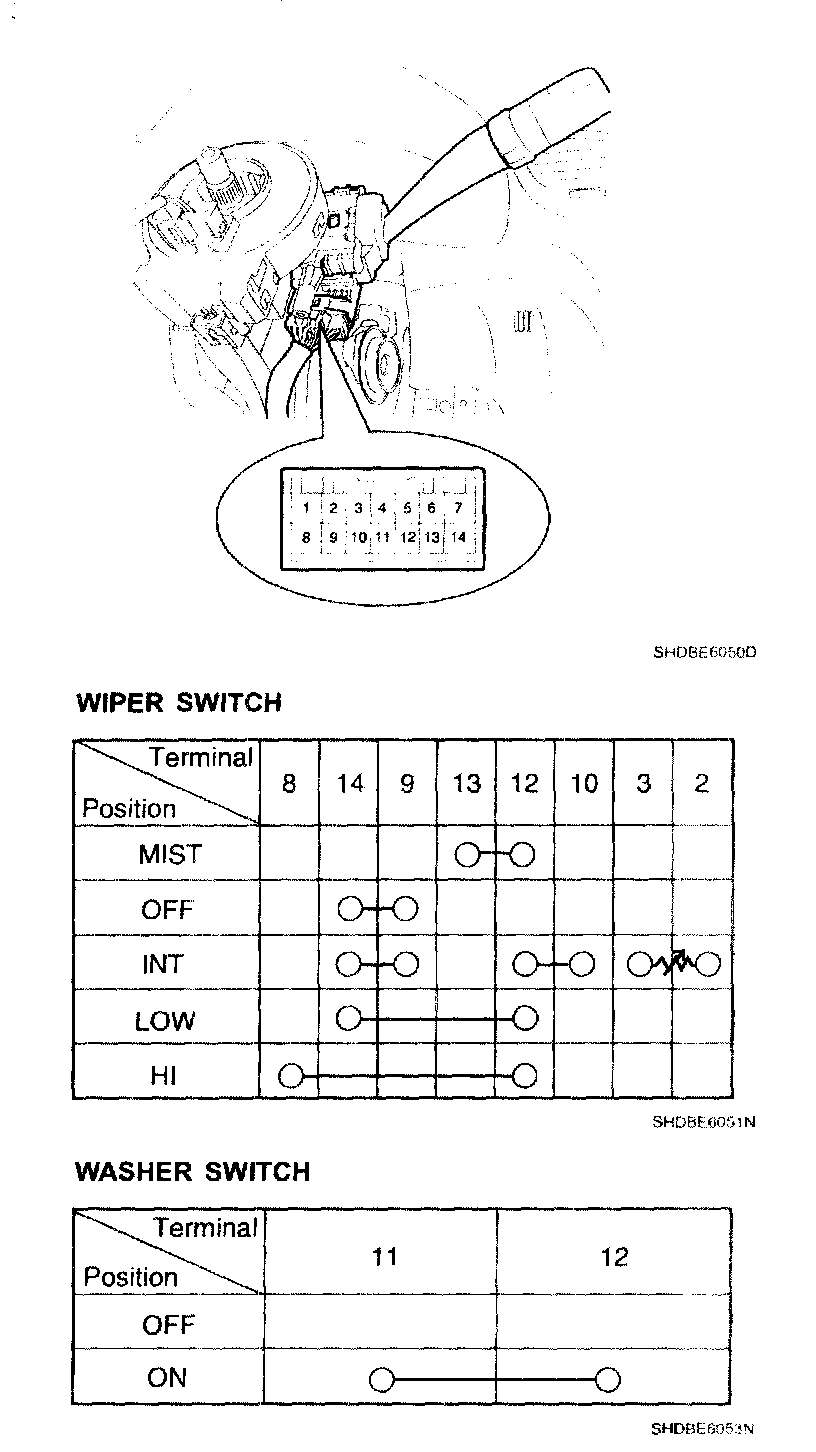 Windshield Washer Switch: Testing and Inspection