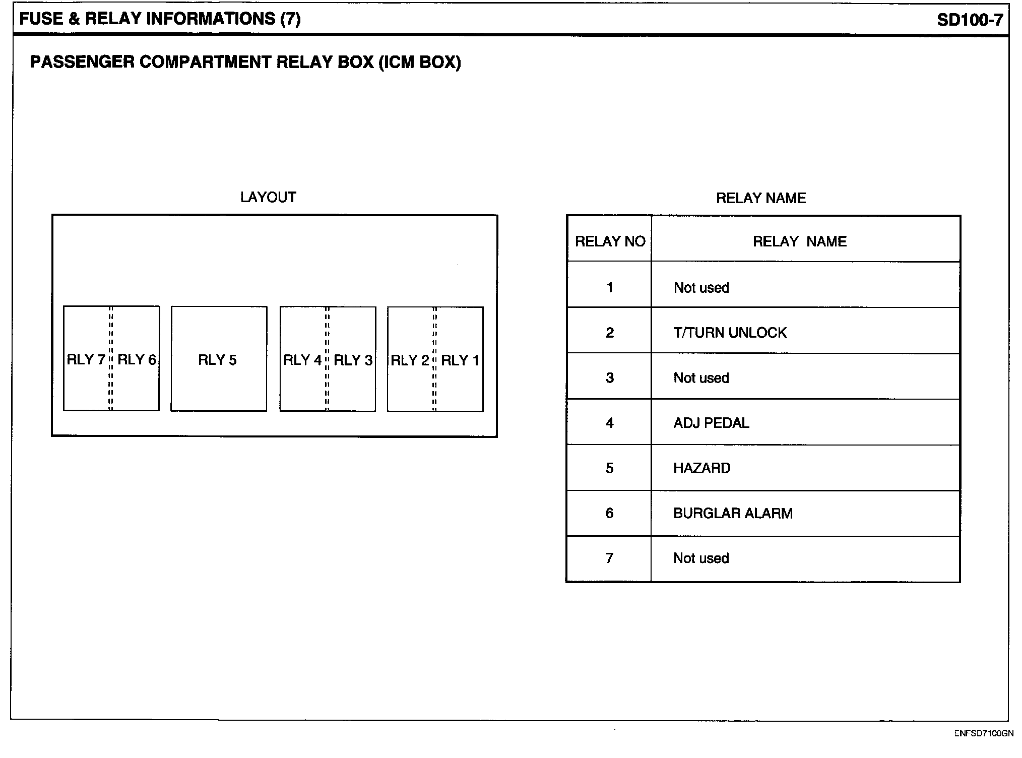 Passenger Compartment Relay Box (ICM Box) Layout View: