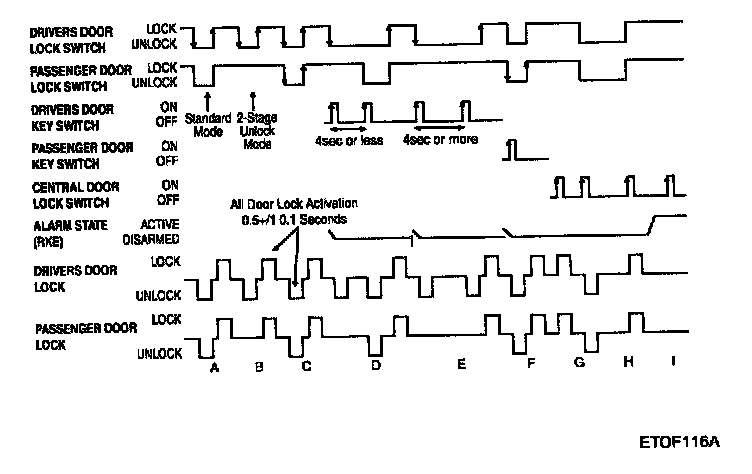 The driver and assist door lock motors are activated in the unlock direction. - F. The system enters the disarm state.