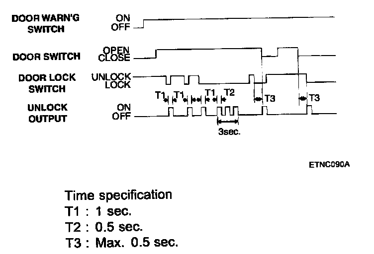 If a subsequent driver door key switch is activated within 4 seconds: The driver and assist door lock motors are activated in the unlock direction. - D