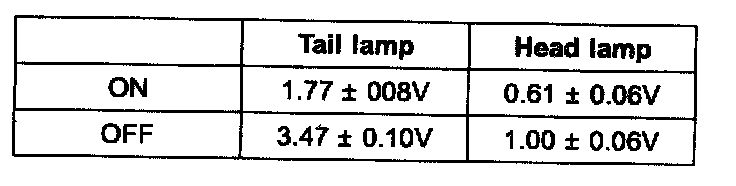 Lights must be turned off 3±1 sec. after the input light to the light sensor has been removed. Head lamps must be turned off 300 msec before the tail lamps are switched off. When the headlight switch is in the auto position and light intensity fulfilling the table above is detected, the tail lamp and the head lamps will be turned on. These figures are based upon the use of untinted solar glass.