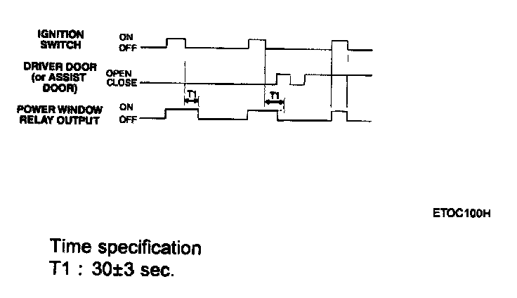 When Ignition 2 is turned off the power window feed is maintained on for 30 seconds and then turned off. If the driver door or assist door is opened during 30 sec interval the output shall be turned off immediately. If doors are open and ignition 2 is them turned on, the output shall be turned on immediately. If doors are open and ignition 2 is then turned off, the output shall be turned off immediately.