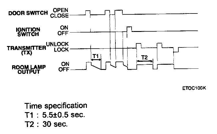 When transmitter (TX) unlock is received, room lamps are turned on in less than 0.5 second for maximum 30 seconds.