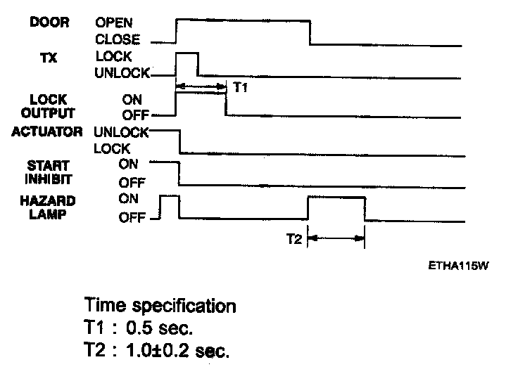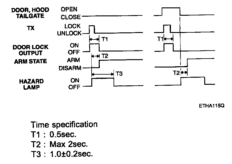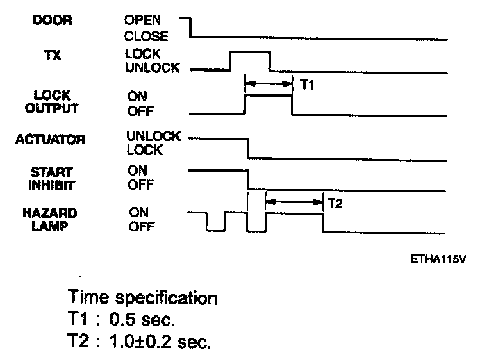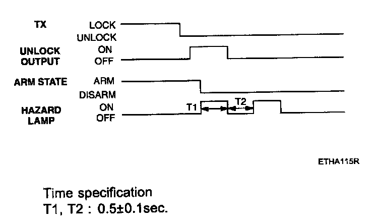 - Pressing the unlock button on the TX key. The hazard lamps shall be flashed twice for 1 sec period (of cycle), 50 % duty rate.