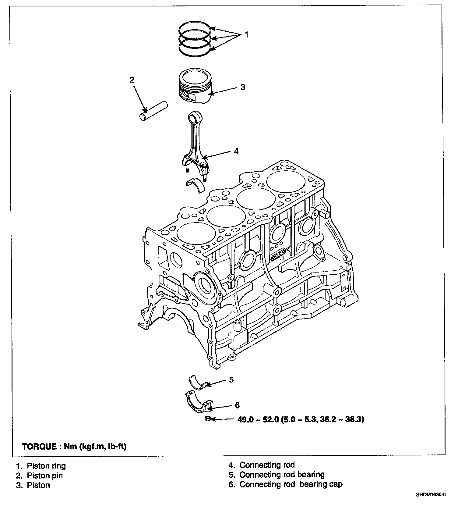 2) Push the piston, connecting rod assembly and upper bearing through the top of the cylinder block.