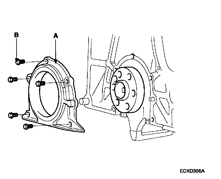 Remove the 5 bolts(B) and rear oil seal case(A).