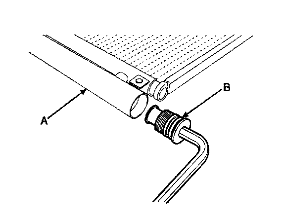 3. Remove the condenser, and then remove the bottom cap (B) from the receiver/drier tank (A).