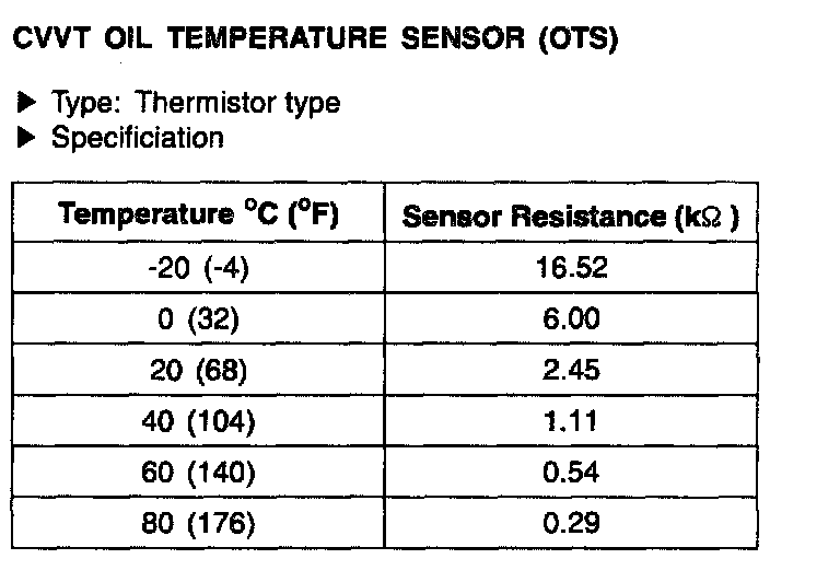 CVVT Oil Temperature Sensor (OTS) - Specification: