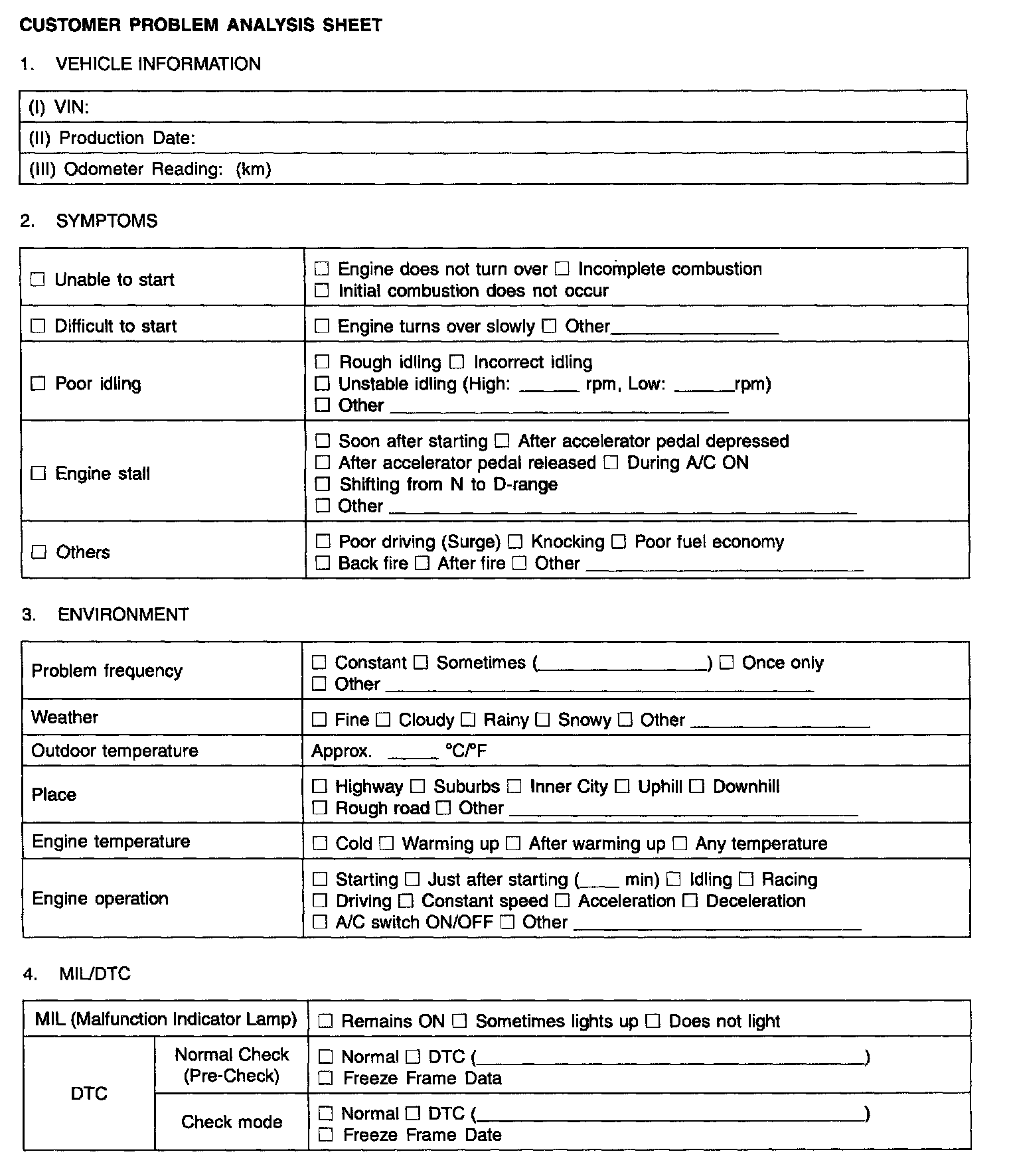 Customer Problem Analysis Sheet