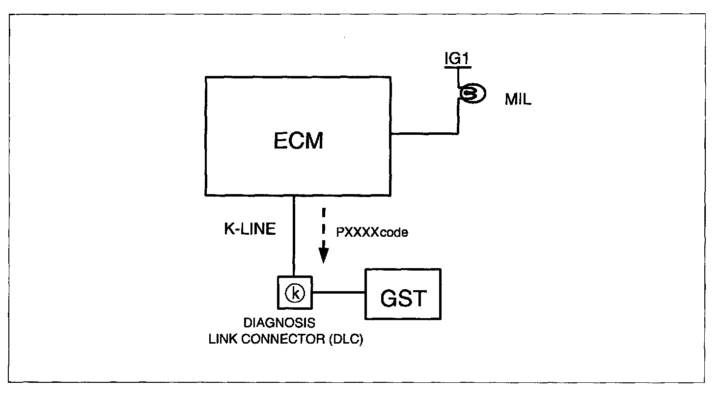 The Malfunction Indicator Lamp (MIL) is connected between ECM-terminal Malfunction Indicator Lamp and battery supply (open collector amplifier).