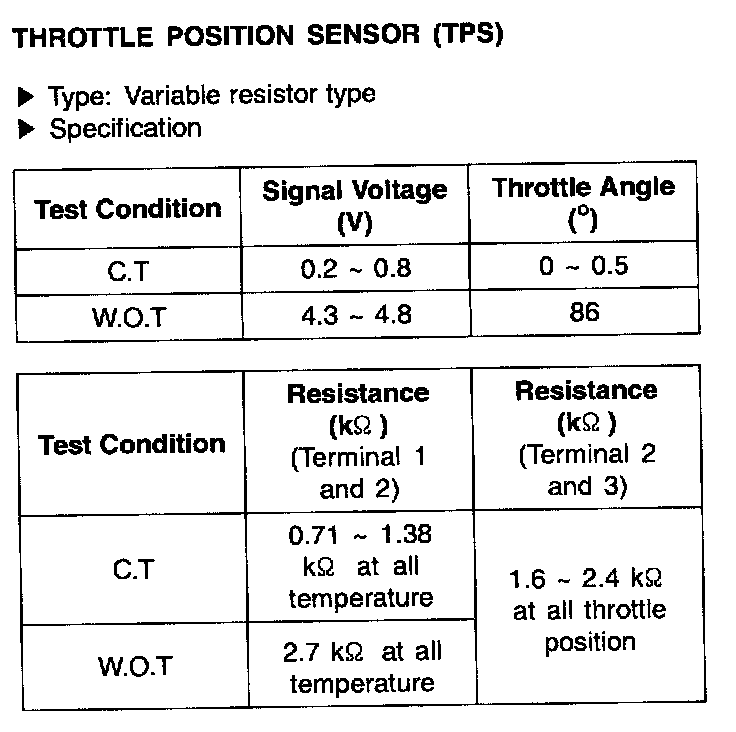 Throttle Position Sensor (TPS) - Specification: