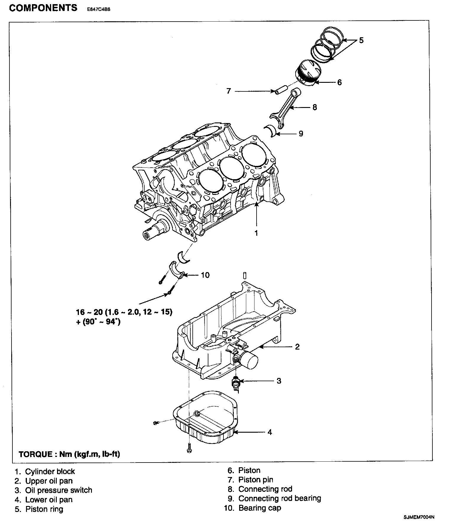 2) Push the piston, connecting rod assembly and upper bearing through the top of the cylinder block.