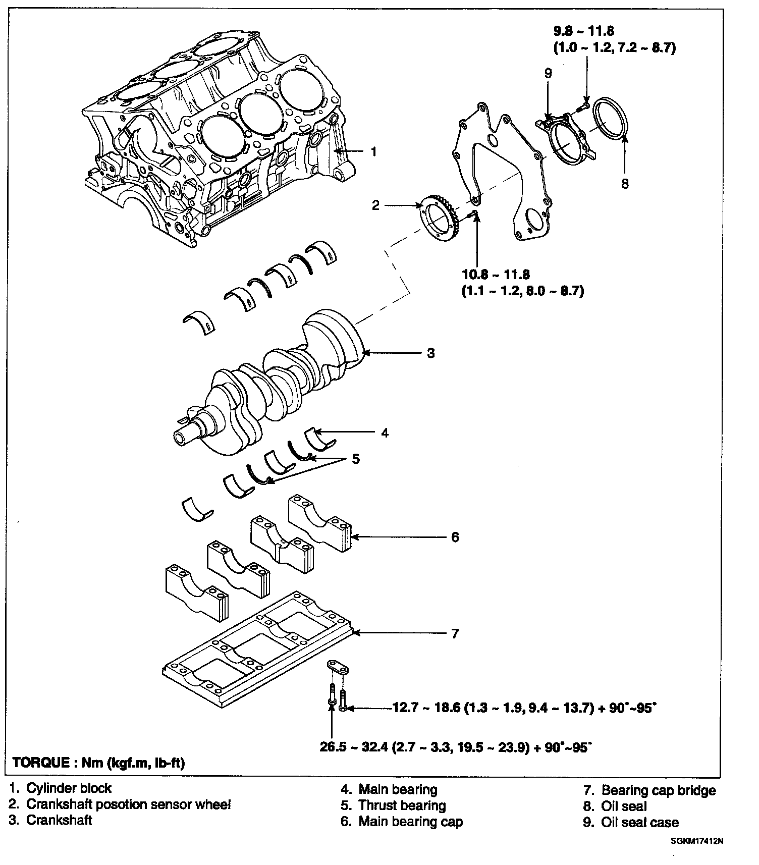 NOTE: Arrange the main bearings and trust washers in the correct order.