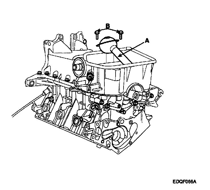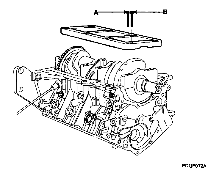 12. Remove oil screen. Remove the 2 bolts(B), oil screen(A) and gasket.