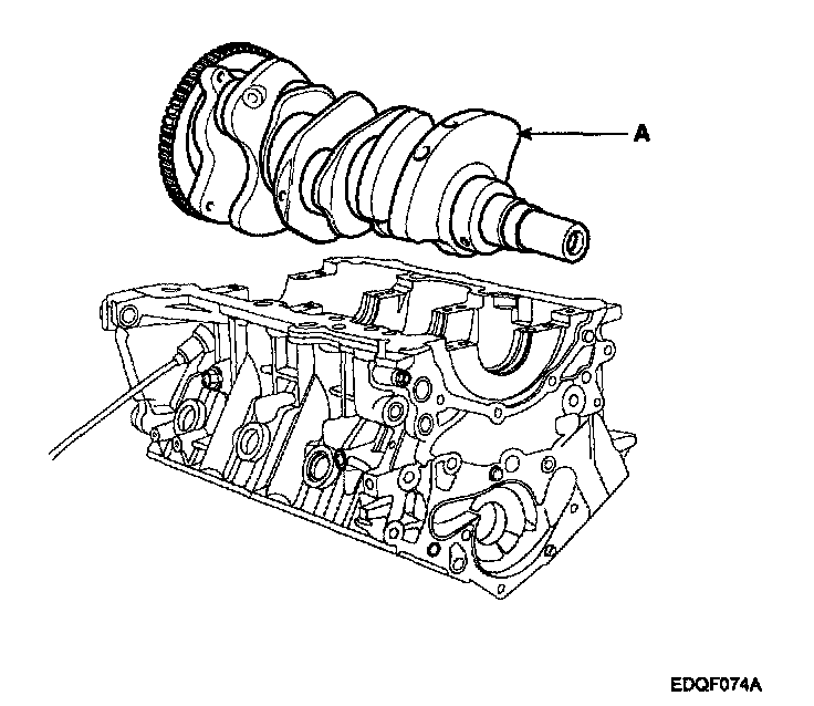 21. Lift the crankshaft(A) out of the engine, being careful not to damage journals.