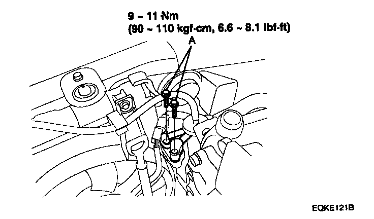 4. Remove the bolts (A), then disconnect the discharge line and condenser line from the condenser.