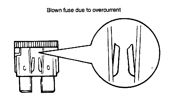 INSPECTION OF FUSESWhen a fuse is blown, there are two probable causes. The two causes can easily be determined by a visual check after removing the fuses.