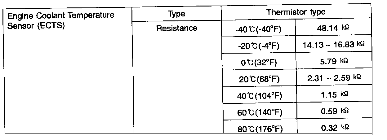 Engine Coolant Temperature Sensor (ECTS) - Specification: