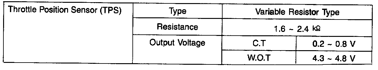 Throttle Position Sensor (TPS) - Specification: