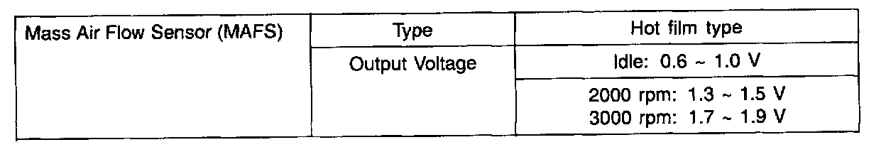 Mass Air Flow Sensor (MAFS) - Specification: