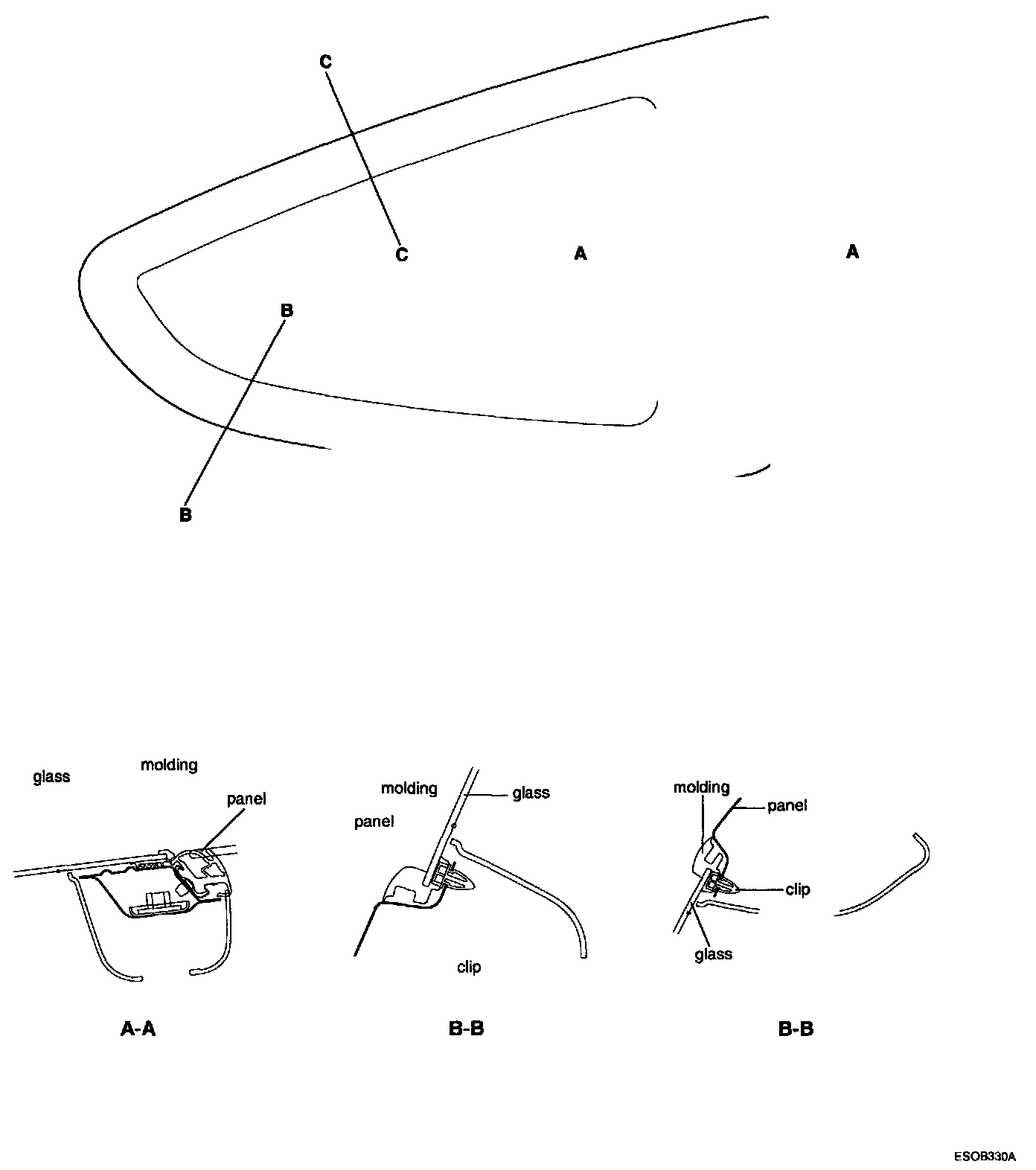 2. After removing the quarter fixed glass molding, cut the sealant using the Special Tool.