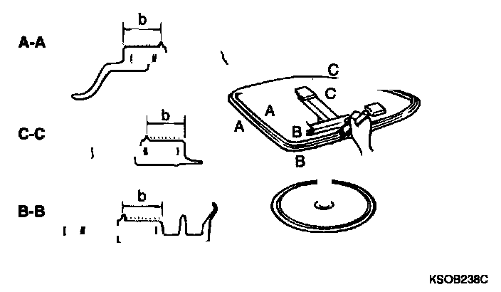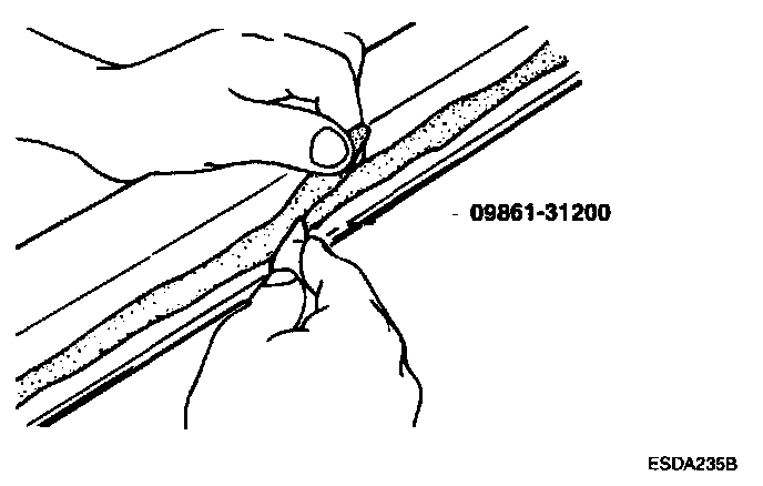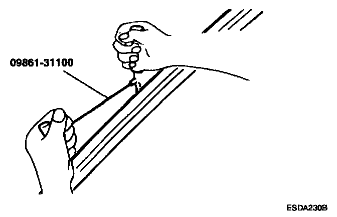 CAUTION: Be careful not to remove more adhesive than necessary, and also not to damage the paintwork on the body surface with the knife. If the paintwork is damaged, repair the damage area with touch-up paint.