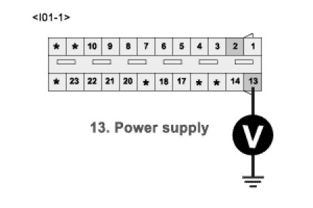 5. Measure voltage between terminal "13" of the SRSCM harness connector and chassis ground.