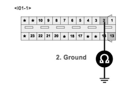 4. Measure resistance between terminal "2" of the SRSCM harness connector and chassis ground.
