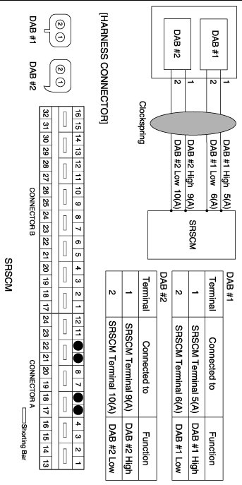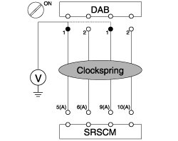 - Repair or replace the wiring harness between the DAB and the clockspring or between the clockspring and the SRSCM.