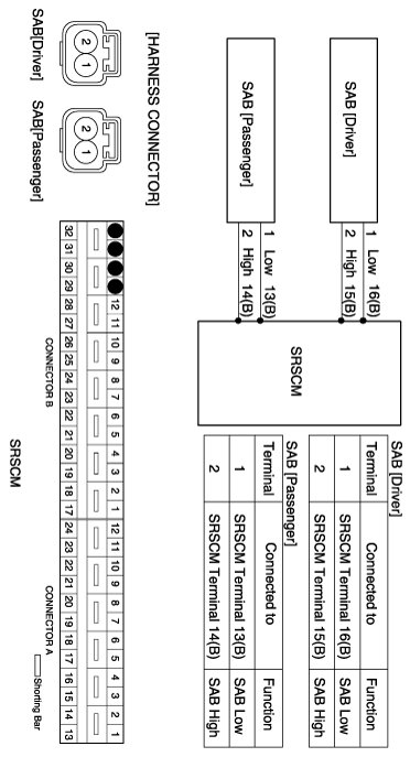 - Repair or replace the wiring harness between the SAB and the SRSCM.