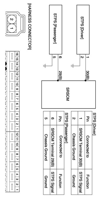 - Repair the open circuit on wiring harness between the STPS and the SRSCM.