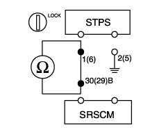 (1) Measure current between the terminal 1(6) of STPS and 30(29) of SRSCM.
